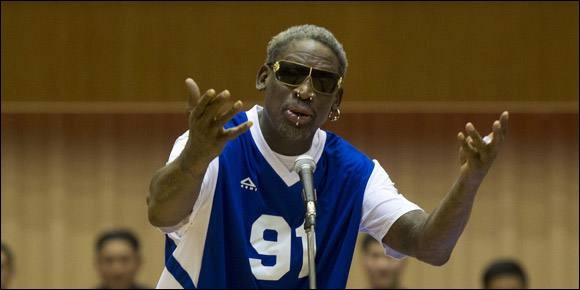 退役了,罗德曼闲着了吗?没有!迷恋女人贴身内衣策办“内衣碗大赛”、万圣节扮演人妖、用旧爱不可描述的照片喷新车、躺在棺材里卖新书、将他的10号球衣在脱衣舞俱乐部退役、第四次访问朝鲜并带领全场观众为金正恩庆生等等...真的不知道怎么形容这位“神仙”了