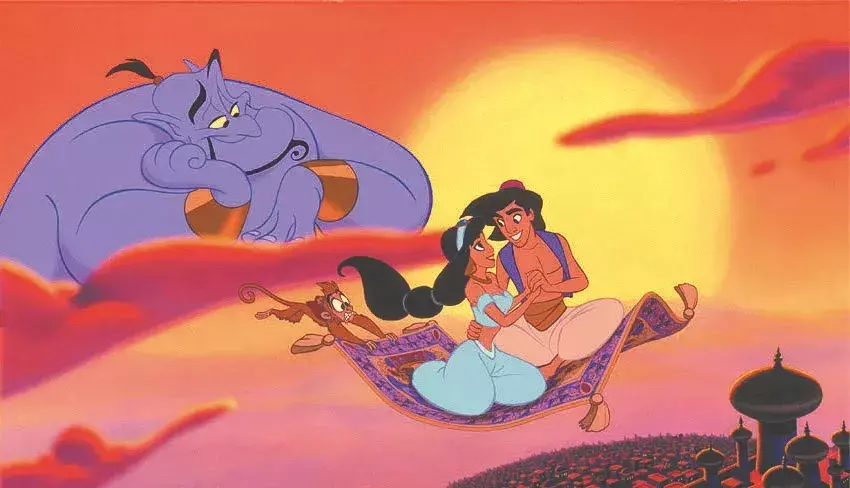 电影《阿拉丁》(1992)剧照,动画中的阿拉丁穿着哈伦裤,已经与“中国人”没什么关系了
