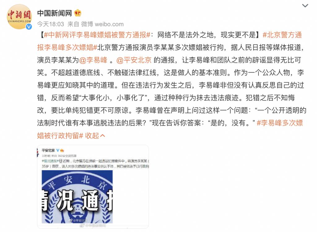 警钟长鸣!媒体辣评李易峰嫖娼事件,专家解读法律责任