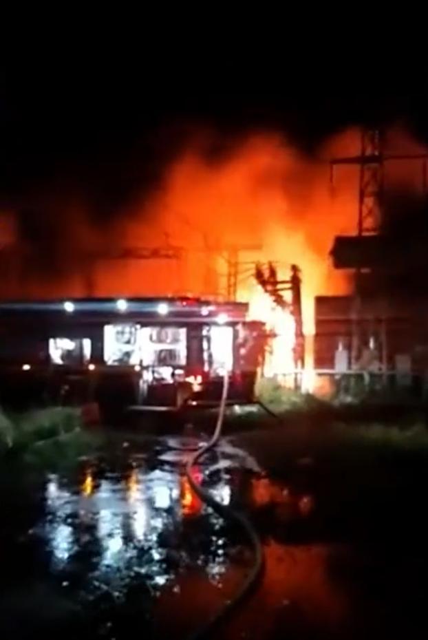 社交网站上的视频显示乌克兰发电站遭到袭击燃起大火(图片来源:央视新闻客户端)