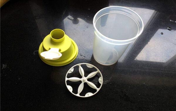 打开摇摇杯杯盖,我们会发现它里面有弹簧,它其实不锈钢搅拌器,作用是快速搅拌,目的是防止蛋白粉出现结块现象。据了解,蛋白粉加入温水中后会难以溶解,需要我们不断搅拌,这无疑会很麻烦,所以为了能够使蛋白粉溶液更加均匀,便在摇摇杯中加入一个弹簧球。