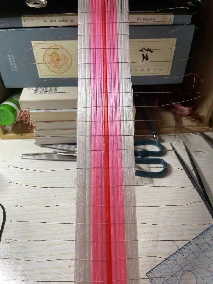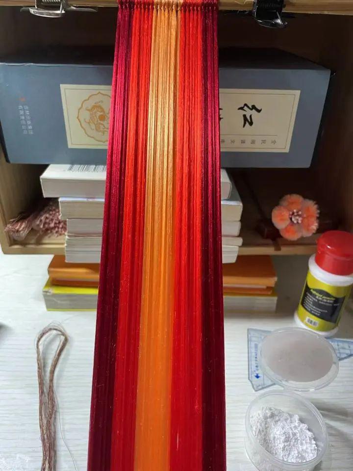 比如拴铜。将 20 多根绒线拴在 1 根铜丝上,每根铜丝直径仅为 2-3.5mm。除了集中精神之外,还特别费眼睛。铜丝太细,很容易滑出手中。为了增大手指与铜丝之间的摩擦力,每次拴铜前,小丹都会在手上抹上滑石粉。拴铜时,她需要握住铜丝两端往反方向用力一拧,绒条才能成功 " 拴上 " 铜丝。多次重复操作后,双手难以避免地干燥发痛,时不时还会脱皮。