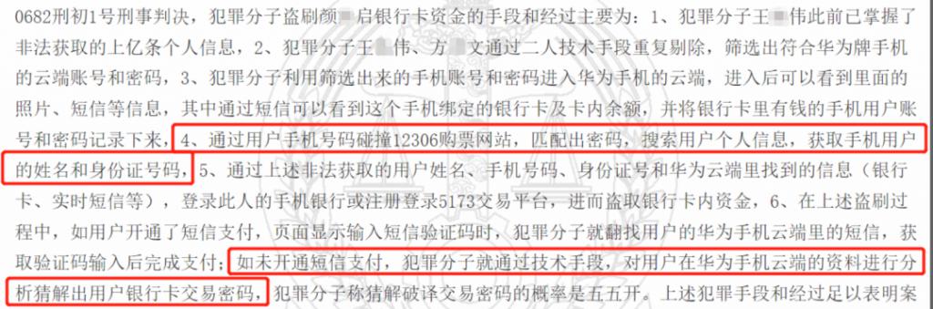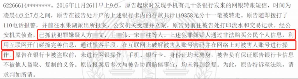 在裁判文书网中,确有类似案件的判决记录:有犯罪嫌疑人非法购买公民个人信息,以黑客手段对受害者的信息进行碰撞,最终破解了受害人的账号和密码。在该案件中,光大银行因没能保障客户存取款交易安全不受非法侵害,被判全责。