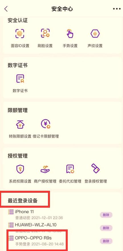 林浩(文惠家人)查询了该账户的近期登录设备,记录显示盗刷者在一台 OPPO 手机上通过指纹登录了银行账户,随后又以指纹支付的方式完成了多笔大额转账。