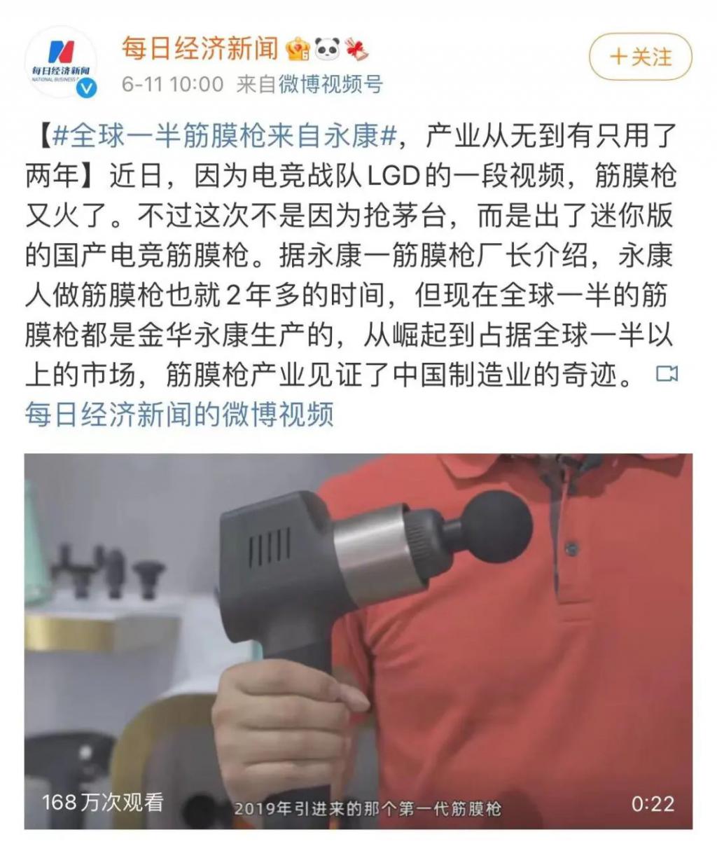 没想到在永康居然还藏着另一个产业:筋膜枪,就是那个可以放松按摩,又可以拼手速抢菜的神器