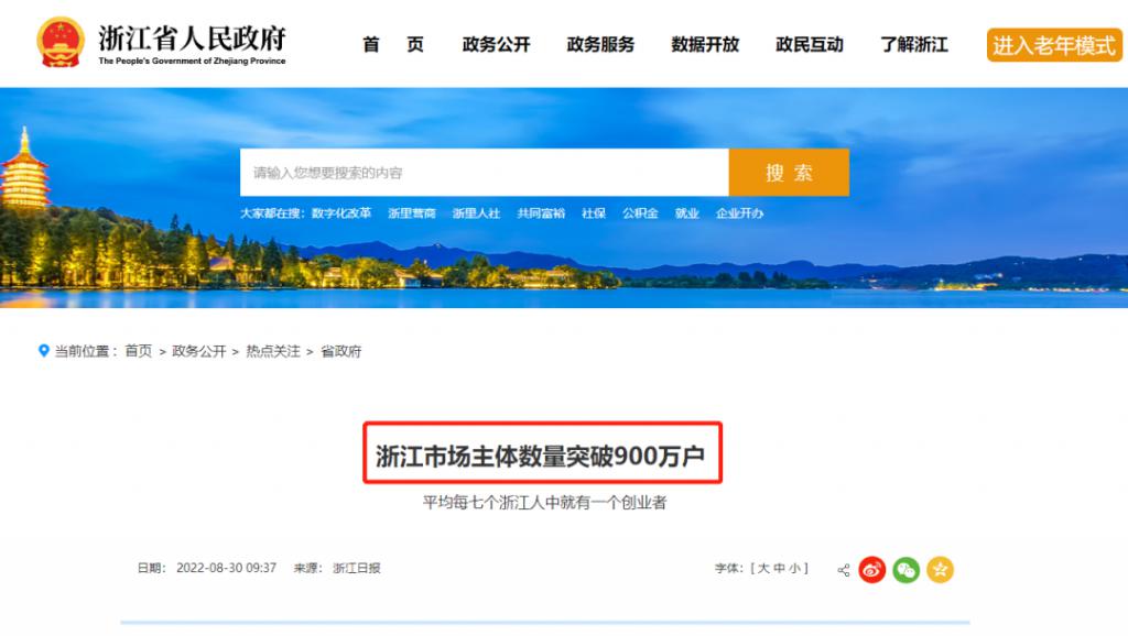 从数据上来看,截至今年 8 月底,仅浙江一个省,市场主体数量突破 900 万户