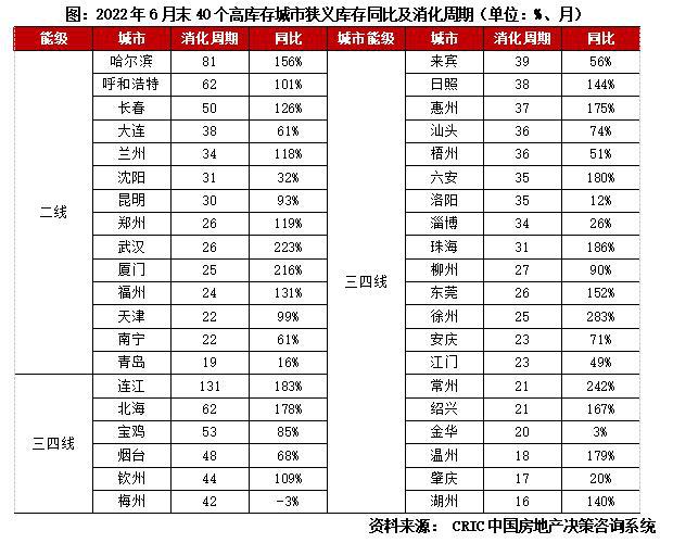 来自克而瑞的数据显示,2022 年上半年,郑州狭义库存(已批准预售尚未销售)去化周期高达 26 个月,远超 18 个月的警戒线,位居二线城市前列。