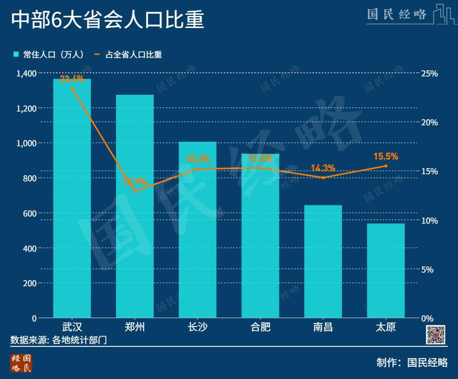 郑州人口占全省比重仅为 12.9%,不仅低于合肥的 15.3%,远落后于武汉的 23.4%,与西安、哈尔滨动辄 30% 以上的占比,更是不可同日而语。(参阅《中部人口第一大城,再次 " 易主 " 了》)