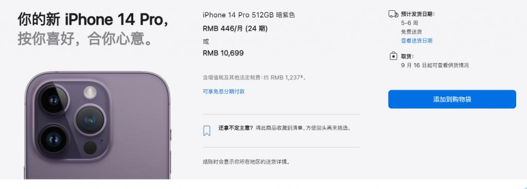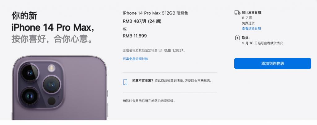 《每日经济新闻》记者注意到,目前从苹果官网订购 iPhone 14 的交货期仅为 2 天;而 14 Pro 的机型交货期则为 5~6 周,而 Pro Max 更长,大约为 6~7 周。