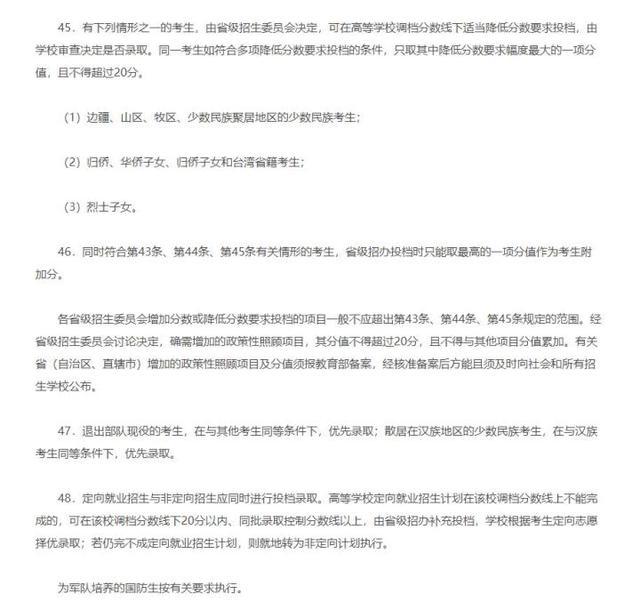 《通知》中关于高考加分的相关政策规定 图源:教育部官网