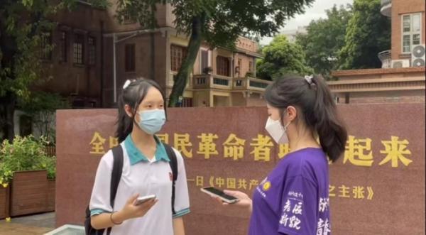 实践队队员在中共三大会址纪念馆与参观学生对话