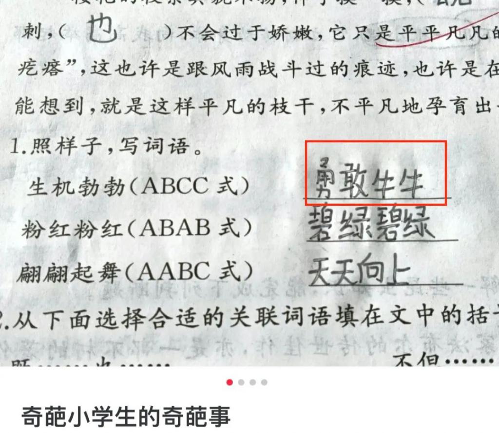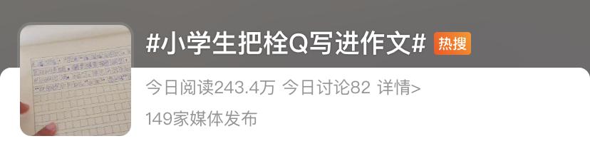张老师是河南许昌的一名语文老师。班里学生上三年级,刚接触作文还不太会写。批改作业时,张老师看到班里一个男生的作文,感觉画风越来越不对劲,直到看见作文出现 " 栓 Q" —— " 顿时感觉血压飚增,头都大了。"