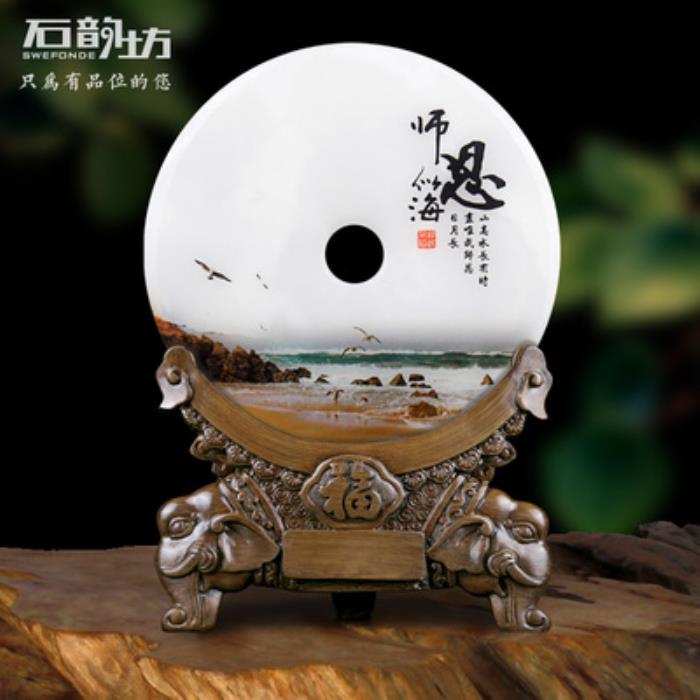 国字中间就是“玉”字,可见玉在国人心中有着重要的地位。玉石上面融合着国画,书法以及篆刻,大大增加了观赏性,老师摆在家中或者办公室里都是很不错的一个装饰品哦。