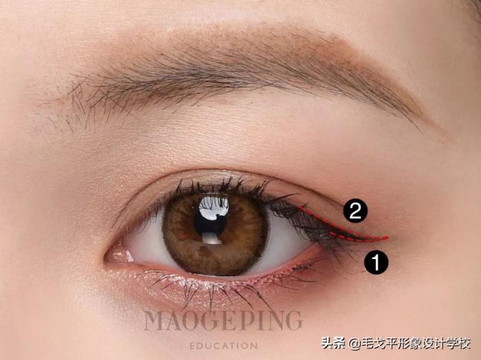 如果你有调整眼型的需求,可以适当修改。眼间距较宽,以及眼睛较圆的妹子,可以适当画长一点。眼间距较窄的人,建议你只要把内眼角的眼线画重一点即可,不要拉长。