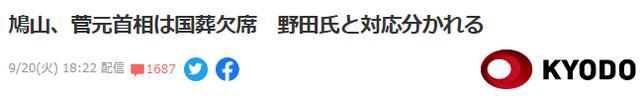 鸠山、菅两位前首相确定不去安倍国葬 图:日媒报道截屏