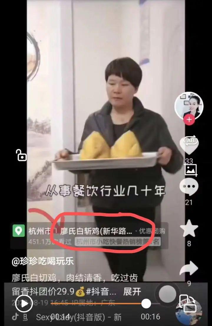 记者随后找到了这条视频,视频中确实出现了廖女士本人的形象,而链接处确实挂的是孙先生经营的 " 廖氏白斩鸡(新华路店)" 的商品。