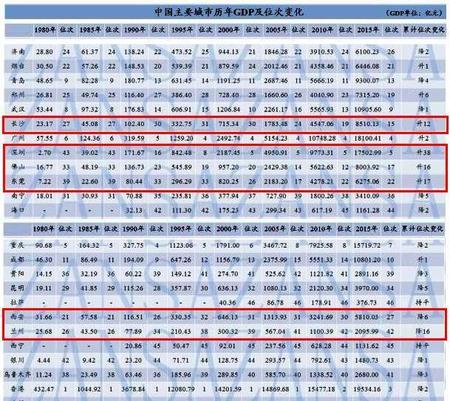 1)从上图可以看出,兰州在1980年经济总量和西安比肩,分别处全国主要城市第21/26名。