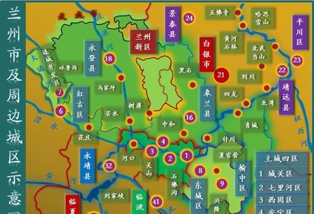 兰州主城区加快榆中副中心建设,榆中撤县设区快速推进,和平周边建设兰州市东城区;榆中、夏官营周边建设兰州渝中区。渝中区成为兰州市高新技术开发区、国内航空站(夏官营机场升级为兰州市国内航空机场),兴隆山5A级旅游基地。