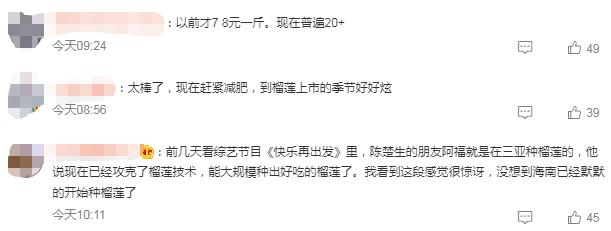 " 以往国内主要依靠进口东南亚地区的冷冻榴莲,在口感和糖度上都会打折扣。" 三亚市农业农村局负责人表示,在三亚出产的榴莲不仅糖度较高,还在时间上有着先天优势,可以用生鲜的方式进入市场,很好地满足国内市场对新鲜榴莲的需求。