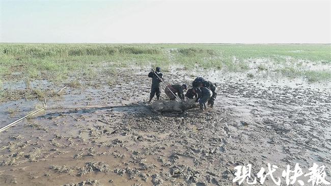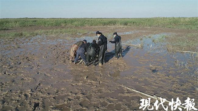 麋鹿被困现场位于射阳港下老河七号滩的沼泽地。10 月 10 日下午 2 点半左右,接到报警,射阳县公安局河闸海防派出所迅速组织民警前往,在保安人员的引导下,民警驾驶警车沿着滩涂的崎岖小路赶到了现场附近。