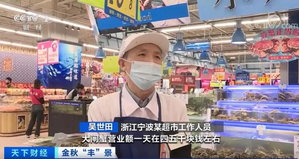 浙江宁波某超市工作人员 吴世田:大闸蟹营业额一天在 4000 元、5000 元左右,每天销售量在 300 只到 400 只左右。