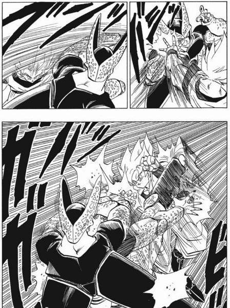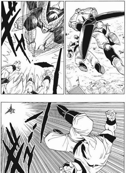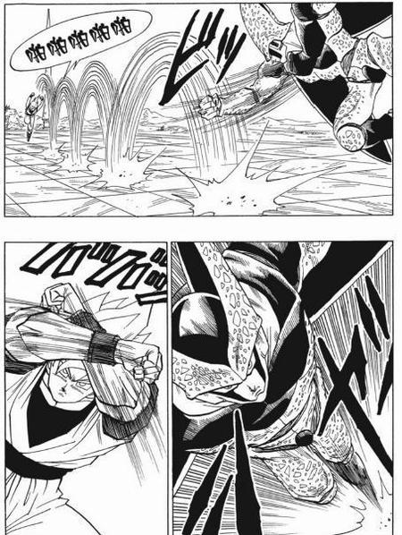鸟山明的龙珠完全让画面动起来,每一次的格斗都是全新的战斗,完全就是让人眼花缭乱的打斗,没有任何套路,每一个分镜的设计,每一次动作的设计都给人一种看动画片的感觉,至少在目前为止,没有什么格斗漫画对于战斗场面的描述能有龙珠这种水平、