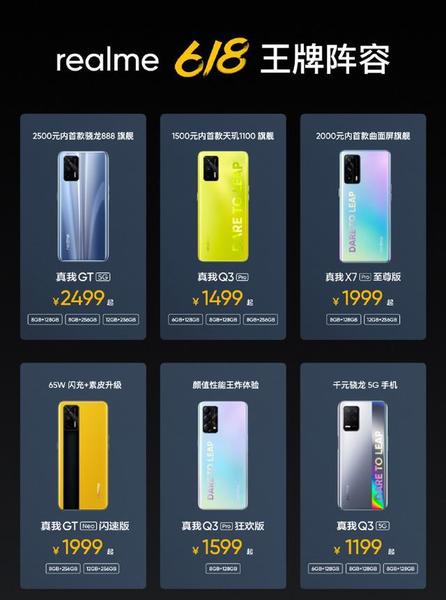 既然追求高性价比的千元机,那么看Realme和Redmi这两个品牌就行了,目前Realme已经将618的阵容列出来了,可以看到一共有6款产品,不过其中的Realme GT价格超过了2000元,因此要排除在外。