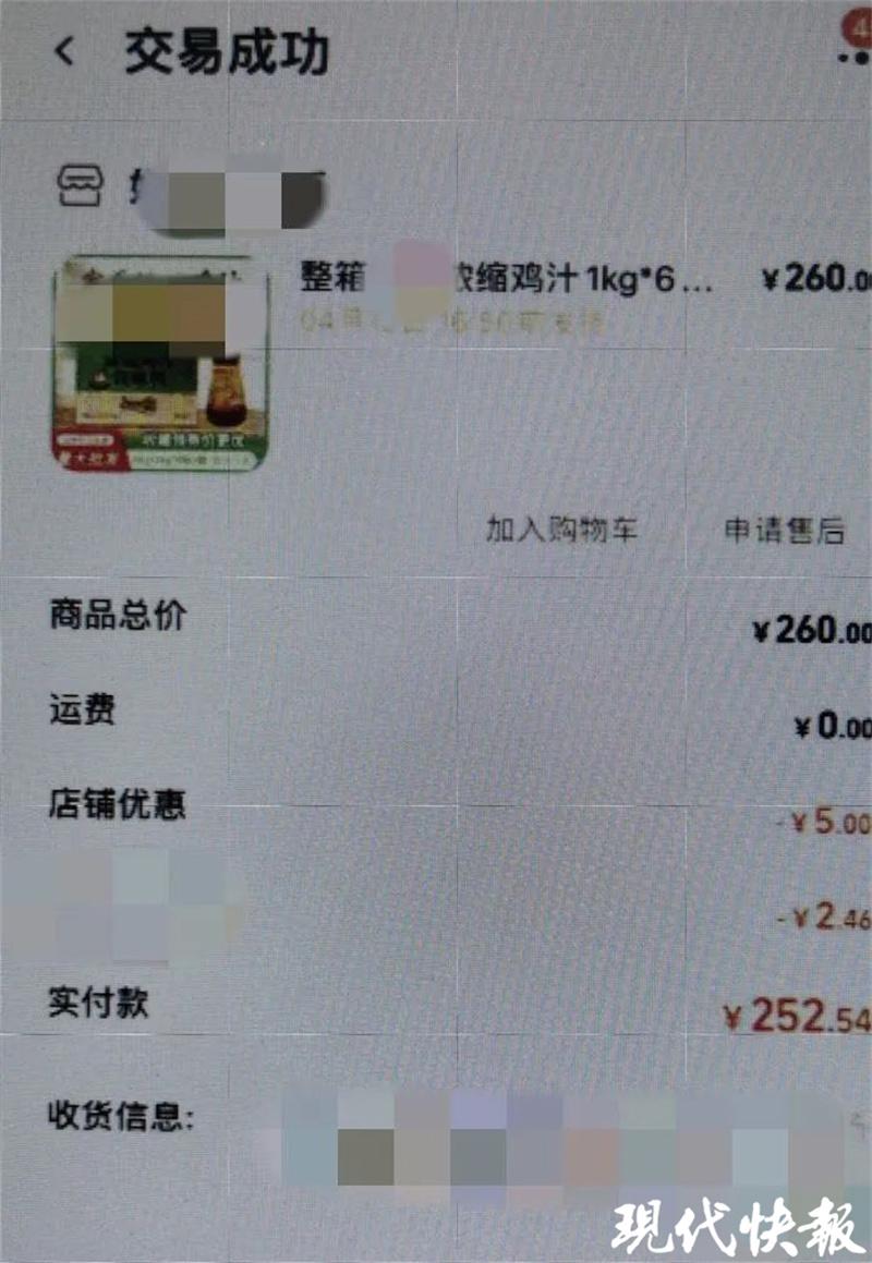 2022 年 4 月,家住扬州宝应的市民王先生发现家中的鸡汁调味品所剩不多,于是打开某网络购物平台搜索鸡汁,发现一店铺内某知名品牌鸡汁 6 大瓶只要 260 元。王先生见性价比如此之高,便毫不犹豫下单了一箱。在使用过程中,王先生越来越感觉到鸡汁口感与之前在超市买的不太一样,觉得可能买到了假货。