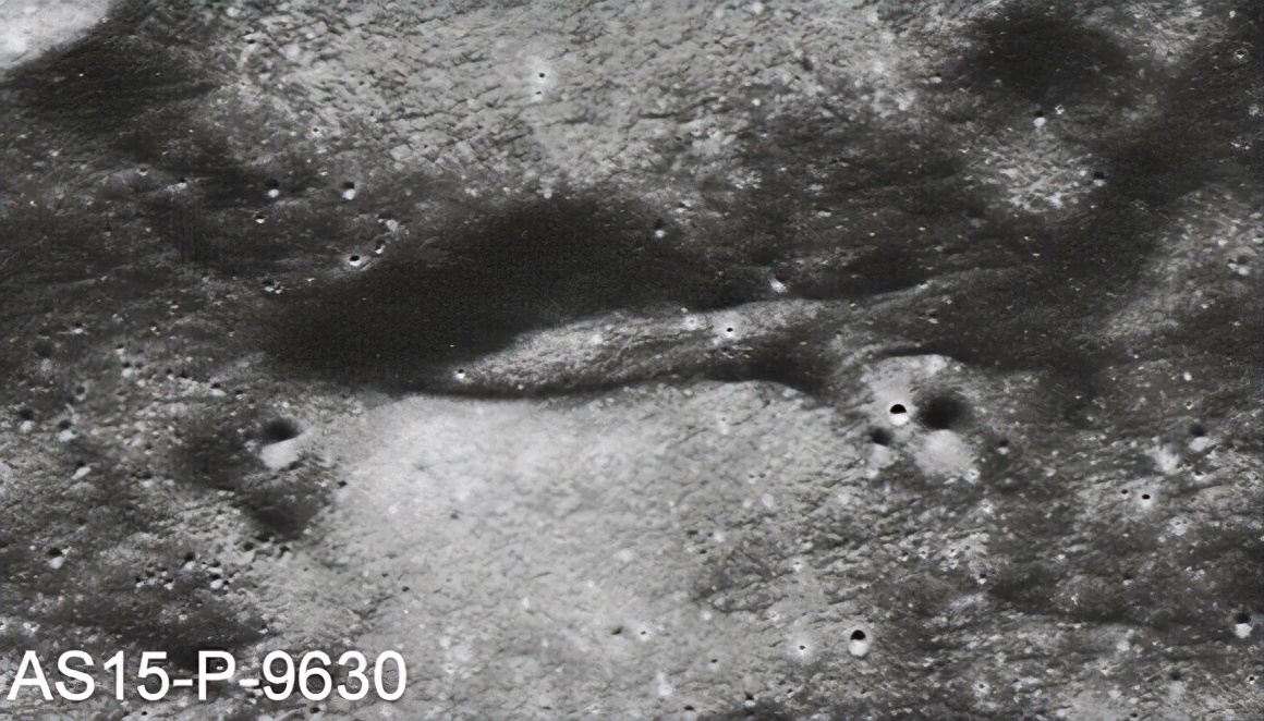 看起来真的非常像一艘飞船横卧在月面上,甚至还能看到突出的驾驶舱部分,还有表面因为陨石撞击而留下的坑,而月面飞船的来历就是如此,但以阿波罗任务系列拍摄的此处照片中,大概就如下图: