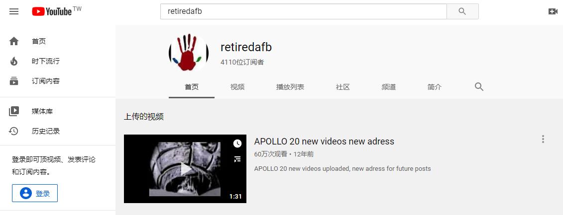 关于阿波罗20任务最早是2007年4月以油管账户“ retiredafb”发布的,同年5月23日,还有一次宇航员访谈录,据称是居住在卢旺达的美国退休宇航员威廉·鲁特里奇,自称是阿波罗20任务组的指挥官,并称自己就是油管账户“ retiredafb”的拥有者!