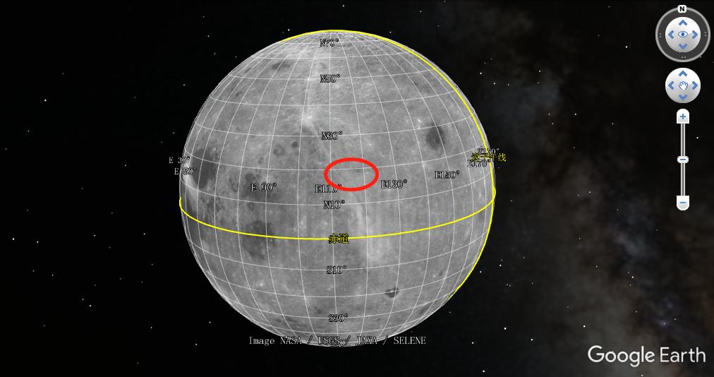 另一个关键则是月面飞船的问题,这个飞船的坐标位置:18°43'19.78 S,117°40'51.45 E,大概在月球背面如下图位置: