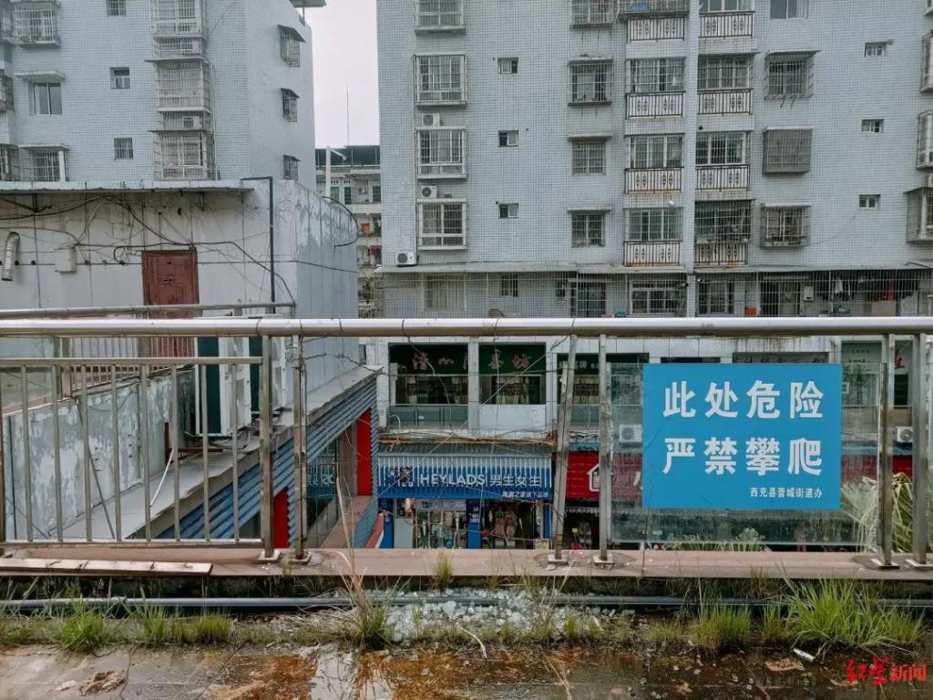 近日,记者前往事发地西充县时代商业中心走访调查,该商业中心有多幢商业楼建筑,人流量并不大,二楼的大量商铺闲置,一些通道因存在的安全隐患已被禁止通行。还有一些玻璃损坏的楼道护栏,则重新被不锈钢焊上,整个商业中心的不少楼道处都张贴有危险警示标志。