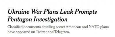 - 乌军对俄作战计划泄露了?! 据美国《纽约时报》4 月 6 日报道,拜登政府高级官员表示,本周,社交媒体上出现了一些机密的军事文件,其中详细描述了美国和北约组织在乌克兰发动...