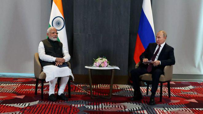 在上合峰会的双边会晤上,普京告诉莫迪,俄追求尽快结束俄乌冲突