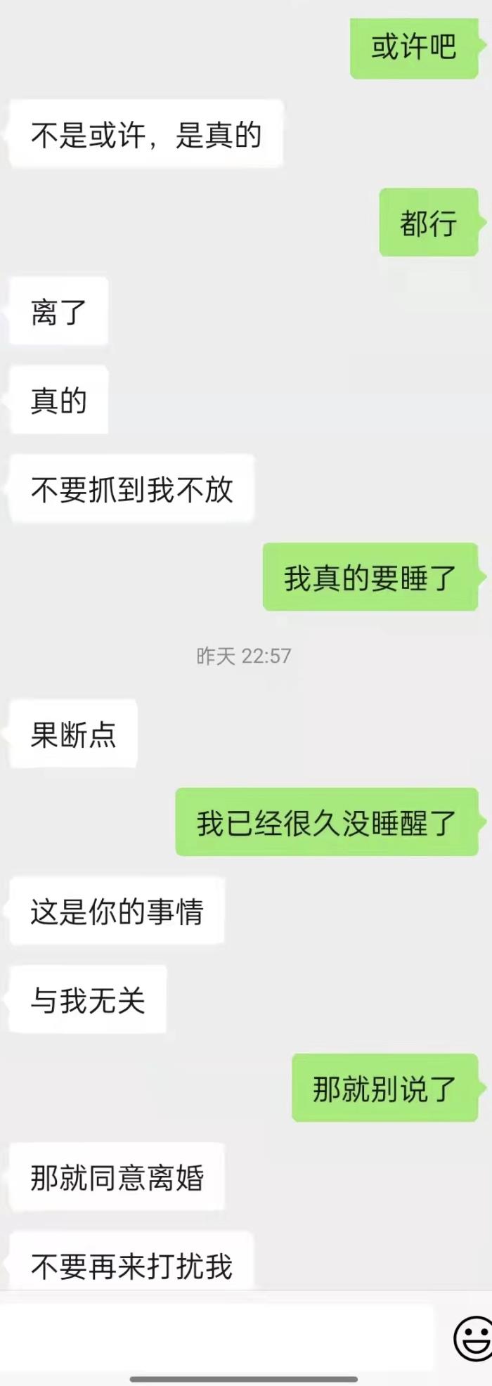 从聊天可以看出,这个男生一直在自说自话,根本没有关心女生在说什么。也不去重视这件事情。女生都已经逼着你离婚了,证明女生有多么失望。喜欢一个人,如果给不了她幸福,不如放手。