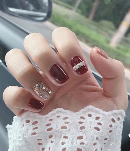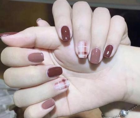 适合白皮和暖黄皮的奶茶红棕色系美甲,很多妹子们觉得大红色比较妖艳会不太喜欢,这款奶茶红棕色就是不错的选择。整体偏暖色系,两个偏深的红棕色也很显白。