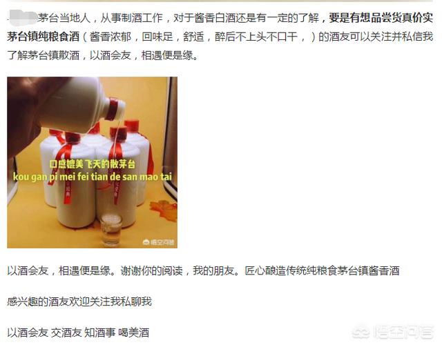且看下面这图,图文中这张图是文东亲手实拍一款五年酒,被人盗用之后加上句:口感媲美飞天的散茅台!