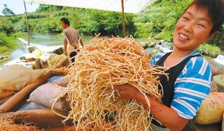 人工种植的折耳根产量高,但是从小就吃到大的人还是能够一下子将野生的和人工种植的折耳根分辨出来,因为人工种植的折耳根在口感上显老,不香,那种鱼腥草特有的味道很淡,一般都是专门供应大城市的农贸市场或者超市,