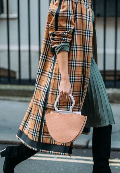 格子风衣+百褶裙+黑色长靴子