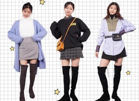 长筒靴最适合用来搭配光腿神器,然后上面搭配短裙短裤,或者是宽松得大毛衣,卫衣等都非常好看。大冷的冬天也能让你有那种视觉露肉的小性感。