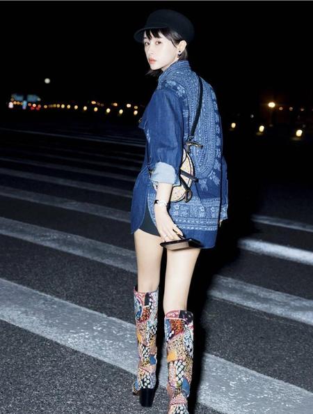 陈妍希黑色短裙+红色长靴