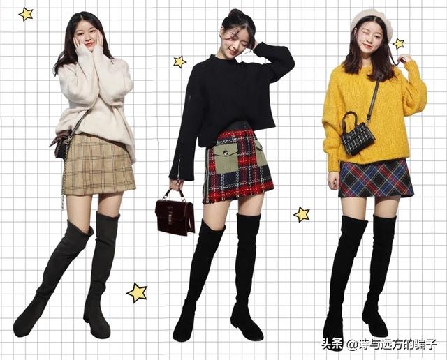 第一种:长靴子+裙子(连衣裙、短裙、长裙)