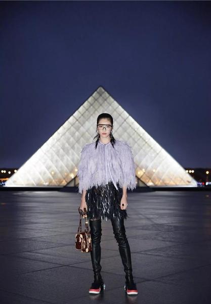 钟楚曦身穿 Louis Vuitton2019早春系列流苏裙搭配黑色运动风长靴亮相品牌2019春夏秀场搭配飞行眼镜真的好酷!气场太强了完美的展现自己的气质。