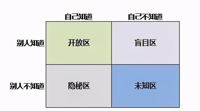 美国心理学家约瑟夫和哈利提出分析人际关系和传播的“哈利之窗”理论,把人类认知分为四个窗户:别人知道,自己不知道的是你的盲目领域。