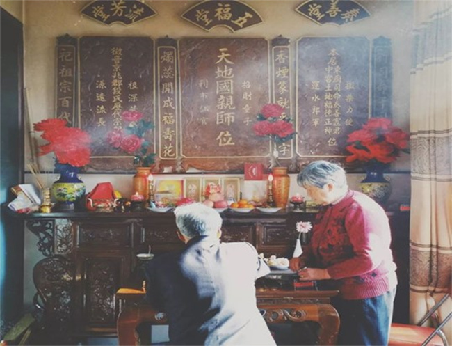除夕祭祖是从古流传至今的习俗,由于地区不同,祭祖的形式也会有所不同,有些地方会在野外叩拜祖坟,也有些地方会在宗祠拜祖,大多数人家都会在家中正厅摆放在祖先的牌位,牌位前的桌子上陈列了各种贡品,祭拜者按照辈分年龄等轮流上前进行叩首祭拜。在古代人们进行祭祖,都会做一些鸡鱼碗菜,盛在高高的碗中,有钟鸣鼎食之意,而南方人祭祖都会准备八大碗,置放在祖宗牌位前进行供奉。