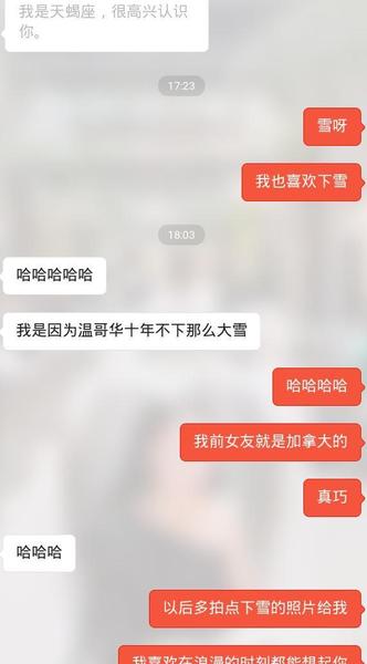 今日份聊天记录,供你作参考:遇到照片有雪的女生,如何打招呼
