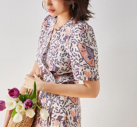 中国人偏爱碎花元素的清丽如兰。这个紫色花雅致不魅,色调清新灵动,是夏天的味道没错了~