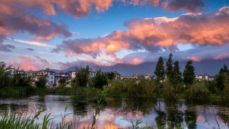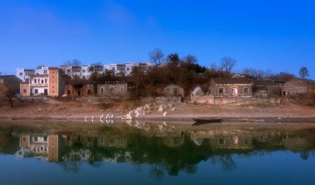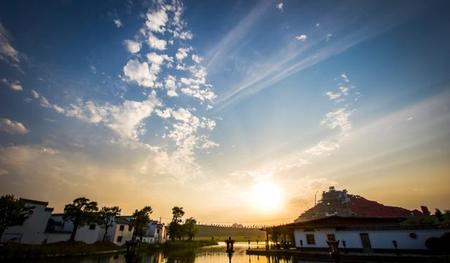 5、既然来到了村落外,咱也不能白跑出来一趟,顺便拍几个小村落或者是古宅的远景吧,可以利用夕阳西下的余光,村落旁的小河流,甚至是小树林来表现村落的美丽和大方: