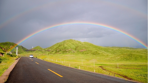 彩虹,又称天虹,简称为"虹",是气象中的一种光学现象,当太阳光照射到空气中的水滴时,光线被折射及反射,在天空上形成拱形的七彩光谱,形状弯曲,通常为半圆状,色彩艳丽。
