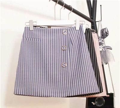 竖条纹元素的设计,不仅丰富了整体的设计感,还能在视觉上拉长腿部的比例,纽扣上也是做了精心的设计的,很别致,很显时尚感,配上小白鞋或者高跟鞋都很显大长腿。